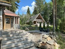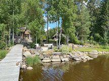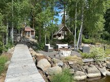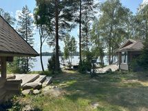 Tarjolla ainutlaatuinen vapaa ajan tila kahdella mökillä, isolla tontilla ja pitkällä rantaviivalla molemmin puolin saarta.
