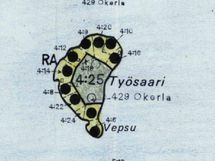 Mökit isolla tontilla, rantaviivaa molemmin puolin saarta, upeat veneilyreitit.
