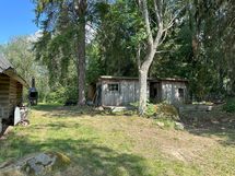 Liiteri työkaluille ja pihan hoitovälineille sekä toisessa varastossa polttava käymälä.