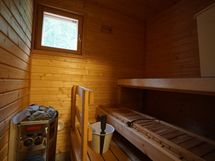 Kuvaus: Päärakennuksessa sähkökiuas. Rantasaunalla puukiuas. sähkökiuas, puukiuas