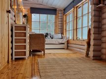 Päärakennuksessa on makuuhuone ja tilava kuistinomainen huone, olohuone ja keittiö.