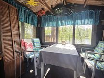 • Lasitettu kesäkeittiö kokkailuun, oleskelutilana avoterassi järvinäkymin