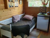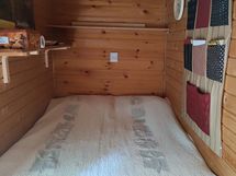 Mökillä on aurinkopaneeli, jolla saa ladattua mm. puhelimet, mökissä kaksi valopistettä. Virtaa riittää myös pienen tv:n katseluun.