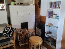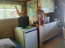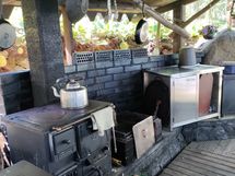 Keittiössä kaasujääkaappi ja kaasuhella. Grillikatoksessa puuhella ja avotuli grilli. Mökissä puulla lämmitettävä tiiliuuni ja alkulämmöt saa kaasulämmittimellä.