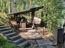 Mukaan tulee myös soutuvene, inkkarikanootti, työkaluja, kalaverkkoja, klapikone, lehtipuhallin ja paljon muuta irtaimistoa.