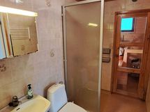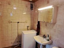 - Suihku, suihkuseinä, allas, peilikaappi, WC-istuin, pyykinpesukone, kiinteä valaisin, lattialämmitys sähköllä.