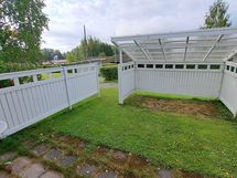 - Asunnossa on terassi. Terassin ilmansuunta: Länsi. Reilunkokoinen aidattu terassi takapiha, joka osin katettu valokatteella.
