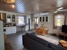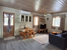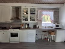 Tilava tupakeittiö luo kodikkaan tunnelman yhdessäoloon, ja suuri makuuhuone takaa mukavat yöunet. Puulämmityksen ja leivinuunin ansiosta mökki on tunnelmallinen myös talvikaudella. Pihapiirissä sijaitsevat lisäksi suuri talviasuttava aitta, grillitupa sekä varastotilat tarjoavat erinomaiset puitteet niin ystävien kuin perheenkin majoittamiseen ja viihtymiseen.