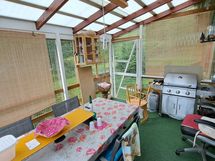 - Asunnossa on terassi. Lasitettu terassi. Terassin ilmansuunta: Itä, Etelä. Päärakennuksen kahta seinustaa kiertävältä katetulta kuistilta käynti lasitetulle (polykarbonaatti) terassille, josta ovi pihalle.