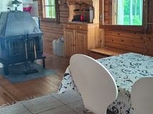 Kotakeittiö on lujaa tekoa ja siellä on istumapaikkoja isommallekin porukalle. Kokkailuja voi jatkaa pihalla savustuspönttöä apuna käyttäen.