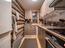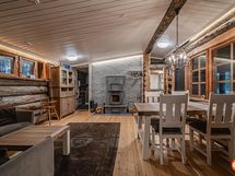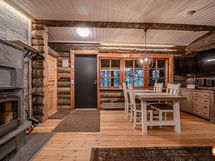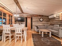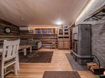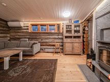 This log cabin exudes authentic Lapland atmosphere, and you can reach it even by flying. The cabin, located on a private waterfront property, has been beautifully renovated, with careful attention to furniture and even the smallest details. For those who appreciate the closeness of northern nature, this log cabin in Ivalo offers a cozy escape from the hustle and bustle of everyday life. Two spacious bedrooms and an open-plan kitchen-living area create a pleasant holiday atmosphere. The living area features a heat-retaining stove, and a heat pump assists with heating throughout the year. In the sauna, you can enjoy invigorating steam, and after a relaxing shower, step out onto the terrace to cool off.