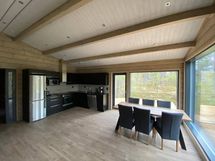 Luonnonmateriaalit, panoraamaikkunat ja harkittu pohjaratkaisu luovat viihtyisän ja yksityisen tunnelman.
