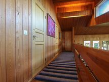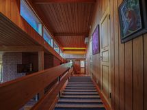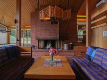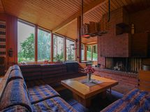 Arkkitehdin suunnittelema päärakennus on valmistunut vuonna 1974. Rakennus seisoo jykevällä kalliolla ja sulautuu ympäröivään maisemaan. Asuintilat kolmessa tasossa, noin 150 m², sisältävät mm. neljä makuuhuonetta ja korkean olohuoneen, jonka sydämenä toimii näyttävä takka. Luonto ja järvimaisema ovat vahvasti läsnä myös sisätiloissa.
