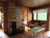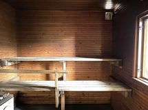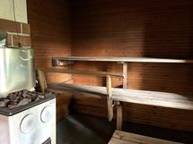- Saunassa on puilla lämpiävä saunankiuas, jonka hormissa on myös lämminvesisäiliö.