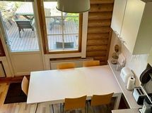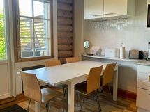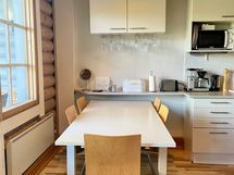 Astianpesukone, Sähköliesi, Liesituuletin, Jenkkikaappi, Mikro, Vedenkeitin, Leivänpaahdin, Iso ruokapöytä 8 hlö