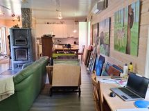 - Käyttötarkoitukseltaan työtila, joka on toiminut taideateljeena. Paljon avonaista, 2,7 m korkeaa tilaa, avokeittiö, suihku/wc, varasto ja kuisti. Rakennuslupakuvien mukaan pinta-ala 96m2. Valmistumisvuosi 2009.