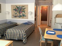 Liesi: keittolevy. Kylmäsäilytys: jääkaappi. Varustus: mikroaaltouuni.