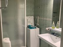 Varustus: pesukoneliitäntä, wc-istuin, suihku, peilikaappi.