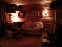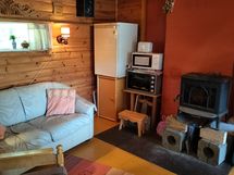 35m2 mökki jossa tupa , kaksi makuu-alkovia ja erillinen varasto/keittiö tila.Sähköt on.Jääkaappi ,