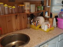 mikroaaltouuni , sähköuuni ja valaistus.Puukamina ja erill. sähköpatteri.