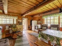 Päärakennuksena toimii 1983 rakennettu kaksikerroksinen mökki, josta alhaalta löydät ison tupakeittiön, alkovin, puku- ja pesuhuoneen sekä saunan. Yläkertaan pääset ulkokautta rappusia pitkin, jossa on iso yhtenäinen huone. Lämmitys hoituu takkaleivinuunilla, sähköpattereilla tai ilmalämpöpumpulla. Kesävesi tulee keittiöön ja pesuhuoneeseen järvestä. Talousrakennuksina on pieni nukkuma-aitta, maakellari ja varasto/liiteri/puucee.