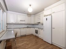 - Jääkaappi, sähköliesi (2021), liesituuletin filtterillä, astianpesukone, kaapistot, kiinteät valaisimet.