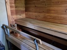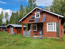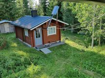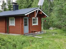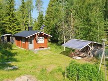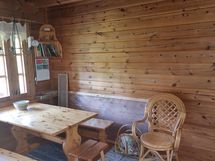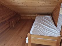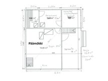 - Päämökki: 42,8 m2 (32 m2 + 10,8 m2 veranta); tupa, pesuhuone, sauna, vieras/varastohuone. Makuutilat 4 hlö:lle tuvan parvella, 1- 2 hlö:lle verannan yläpuolella.