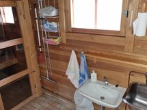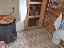 - Avattava ikkuna, 80 l hanallinen vesipata, vesiliittymät pataan ja kahteen pesualtaasen, laattalattia