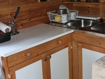 - Jääkaappi, paljon kaappitilaa. Päämökin keittiössä 2-altainen pesullas ja vesihana. Vierasmökissä 2-altainen pesuallas ja käsienpesuallas. Molemmissa mökeissä liesi kamiina. Vierasmökissä on puuhella vesisäiliöllä.