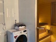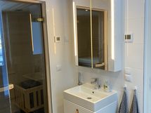 Kylpyhuoneessa on wc, suihkunurkkaus, kuivaava pyykinpesukone, sähköinen pyyhekuivain ja hiustenkuivain. Tilassa on lattialämmitys.