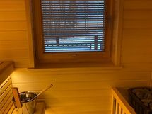 Sauna on varustettu sähkökiukaalla. Rantasaunan voit vuokrata yksityiskäyttöösi hotellista.