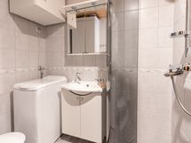 Suihku, Pesukoneliitäntä, Mukavuuslattialämmitys, Tilaa pesukoneelle, Käsisuihku, Kaapisto, Allas, WC-istuin