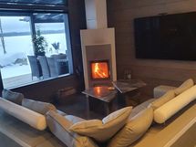 Tyylikäs Kontio talviasuttava hirsihuvila 1 tasossa, upea aurinkoinen sijainti ihastuttavan poukama-laguunin vieressä.