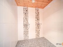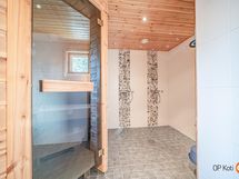 Sauna, sähkökiuas hetivalmis, kylpyhuone, erillinen wc, suihku kaksi suihkua, peilikaappi, allaskaappi, pesukoneliitäntä, lattialämmitys sauna- ja kylpyhuoneessa, olohuoneessa, kiinteät valaisimet.