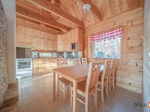 ******************************************************************** A log cabin accommodating even a larger group in an authentic Lapland fell landscape in Pallas. The cabin is in good condition, and the spaces spread over three floors are functional. The open-plan kitchen with a fireplace, three bedrooms, a practical utility room, as well as a cozy large lounge with a fireplace and a sauna area create an enjoyable holiday. From the upstairs windows, there is a majestic view, and the loft provides additional sleeping space. This is a place where you can comfortably stay for an extended period. Nature is right next door. The yard includes a kota (Lappish hut) and an outbuilding with a carport. Come and fall in love with this wonderful property!