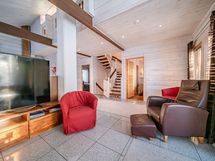 Tarjolla ainutlaatuinen mahdollisuus ostaa puolet alppihenkisen, 200 m²:n paritalohuoneiston osakkeista. Kolmikerroksisessa huoneistossa on viisi makuuhuonetta, joista jokaisessa on oma vaatehuone. Keskikerroksessa on avara ja valoisa tupakeittiö, jonka suuret ikkunat avautuvat etelään. Kellarikerroksessa on takkahuoneen lisäksi saunaosasto sekä kodinhoitohuone. Vuoden 2025 hallintaviikot: 2,5,6,8,11,12,14,17,18,20,23,24,26,27,29,30,32,35, 36,38,41,42,44,47,48 ja 50.