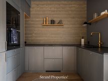- Liesi: integroitu, induktio. Työtasot: muu. Kylmäsäilytys: jääkaappi/pakastin. Varustus: liesituuletin, astianpesukone, varattu paikka astianpesukoneelle, kiinteät valaisimet. Tasokkaasti varustellun keittiön astiasto on Iittalaa sekä Hackmania. Messingin väriset hanat tuovat kokonaisuuteen ylellisyyttä ja persoonallisuutta. Työtaso kestävää Decton- kivikomposiittia.