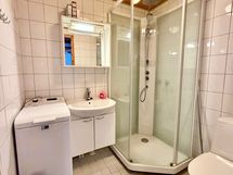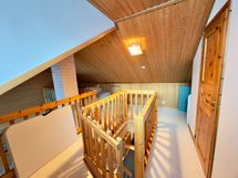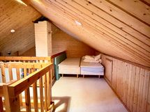 Three bedrooms provide a comfortable setting for relaxation, and the loft adds versatile space for guests or leisure activities, for example. The loft also has its own toilet, which adds to the comfort of living, especially for larger groups. The sauna area invites you to relax after an active day – the bathroom has everything you need, including a shower cubicle and washing machine. The outdoor cold storage room provides convenient storage space for skis, bicycles, and other recreational equipment.