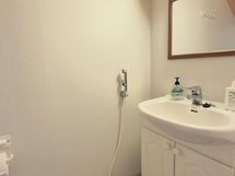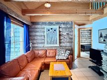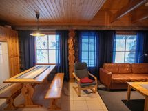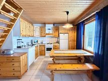 The heart of the apartment is the spacious living room/kitchen, which offers plenty of room for socializing. The well-equipped kitchen makes cooking easy, and the fireplace in the living room creates a warm, cozy atmosphere for Lapland evenings. The current fireplace will be replaced according to the buyer's wishes, so you can influence the final result.