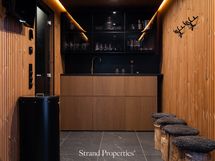 Huvilan näyttävä helmi on spa-osasto, jonka yhteydessä on tilava baaritiskillä varustettu pukuhuone. Täältä on suora käynti lasitetulle terassille ja ulkoporeammeeseen, jotka tarjoavat upeat puitteet rentoutumiseen kaikkina vuodenaikoina. Kokonaisuus on suunniteltu niin, että seurustelu, saunominen ja yhdessäolo nivoutuvat luontevasti yhteen.