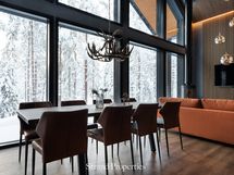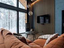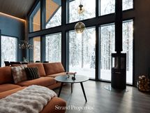 Vuosi sitten käyttöönotettu korkeatasoinen huvila omalla tontilla Levijärven alueella. Kokonaisuus on toteutettu huolella alusta asti, ja suunnittelussa on painotettu sekä näyttävyyttä että käytännöllisyyttä. Tilat on mitoitettu palvelemaan vaivattomasti suurempiakin seurueita, ja neljän makuuhuoneen pohjaratkaisu tarjoaa luontevan tasapainon yhteisten oleskelutilojen ja oman rauhan välillä. Avarat näkymät ja harkitut tilaratkaisut tekevät kokonaisuudesta selkeän ja viihtyisän.