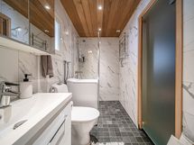 -wc / suihkutila täydellisesti remontoitu 2020: vesieristykset, laatoitukset, kattopanelointi, valaistus, kalusteet, putket, vesivaraaja