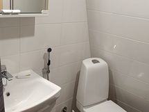 Suihku, Suihkuseinä, Pesukone, Kuivauskaappi, Peilikaappi, Laattalattia, Allaskaappi, Laattaseinä, Avattava ikkuna, Lattialämmitys