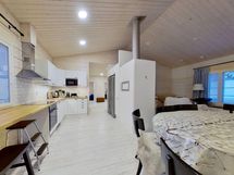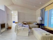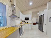 This magnificent holiday home completed in 2017, set in a peaceful location in Äkäslompolo, offers the perfect escape from the hustle and bustle of everyday life. The cottage is single-storey, built to a high standard, and is in excellent condition. This winterized cottage features four bedrooms, a modern kitchen, and a spacious living room with an atmospheric fireplace/bread oven combination that provides both warmth and ambiance. The modern kitchen is fully equipped with all necessary appliances, making cooking effortless. The four bedrooms offer ample space for family or guests.