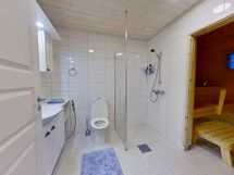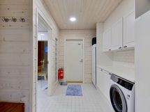 Mökin saunassa voit rentoutua ja nauttia löylyistä pitkän ulkoilupäivän jälkeen. Kodinhoitohuone helpottaa arjen askareita, ja siellä on myös pesukone ja kuivauskaappi. Autokatos ja kaksi ulkovarasto tarjoavat lisää säilytystilaa esimerkiksi harrastusvälineille.