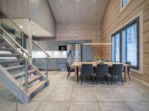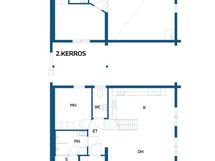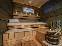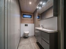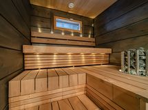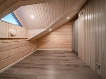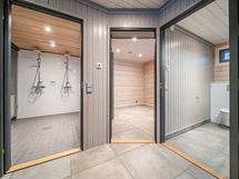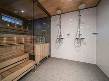 avokeittiö, olohuone, 1 makuuhuone, 2 makuutilaa, 2 WC, vaatehuone, kylpyhuone, sauna
