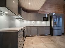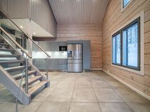 Mäkeläntie 1 B 2, Äkäslompolo, Kolariavokeittiö, olohuone, 1 makuuhuone, 2 makuutilaa, 2 WC, vaatehuone, kylpyhuone, sauna