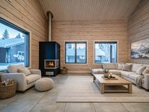 Tässä uudessa laadukkaassa ja tunnelmallisessa paritaloasunnossa yhdistyvät moderni asumismukavuus ja perinteinen hirsirakentaminen. Asuintilojen lämmin käyttöala 98m2. Tilava avokeittiö, olohuone Uuniseppien varaavalla takalla, makuuhuone, 2 makuutilaa, vaatehuone, kylpyhuone, sauna, kaksi WC:tä ja eteistilat tarjoavat toimivan ja viihtyisän kokonaisuuden. Takka luo lämpöä ja tunnelmaa, ja etäohjattava sähkölämmitys varmistavat asumismukavuuden kaikkina vuodenaikoina. Rakennettu laadukkain materiaalein esim Villeroy Boch iso lattialaatta, kylpyhuoneessa sormipaaneelia ja saunan lauteet puusepän paikalla tehdyt öljytyt haapalauteet. Tontin takapiha rajoittuu puistoon ja näkymät upeaan Kesängin tunturimaisemaan. Loma-asuntoon kuuluu autokatos, jossa voimapistorasia sähköauton latausta varten, sekä lämminvarasto 9 neliötä, jossa on kuivauskaappi – täydellinen ratkaisu ulkoilmaelämästä nauttivalle!