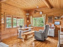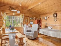 Hyväkuntoinen ja siisti hirsimökki, jossa tupakeittiö, olohuone sekä makuusoppi. Varaava takka lämmittää mökkiä mukavasti ja ruokaa voi laittaa joko puu- tai kaasuhellalla. Olohuoneesta ja terassilta hieno näkymä järvelle. Samassa rakennuksessa myös sauna, jossa lähes uusi kiuas.