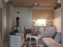 - Lattia: Keittiössä: lauta. Pesutiloissa: laatta. Olohuoneessa: laatta. Makuuhuoneessa: lauta. Saunassa: laatta. Seinät: Keittiössä: maalattu. Pesutiloissa: kaakeli. Olohuoneessa: maalattu. Makuuhuoneessa: maalattu. Saunassa: puu.